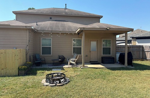 The backyard is perfect for outdoor gatherings, with a large seating area, a fire pit, and grill for barbecues. Ideal for long-term stays, this home is equipped with fast WiFi and allows you to log into your favorite apps.