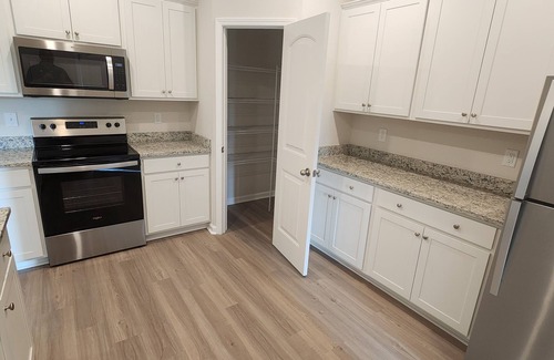 Modern Kitchen – stainless steel appliances, granite countertops, and plenty of storage