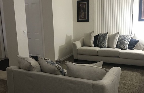 MAKE OUR HOME YOUR HOME! A beautiful 5-bedroom house has everything you need for your Kissimmee trip! We love that the master bedroom is on the first floor and the remaining 4 bedrooms are upstairs. Our spacious home comes with two living spaces equipped with TVs and cable. During your stay, you can also enjoy using our kitchen, washer and dryer, and garage. No parking on the street, grass, or sidewalk! Strictly enforced!