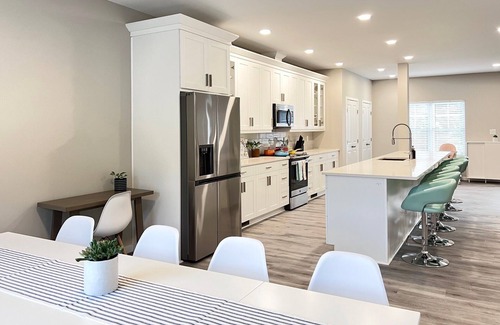 Enjoy gatherings around the 14-foot breakfast bar and the expansive dining table. We provide nearly every essential for your stay, ensuring a genuine home away from home experience. We hope you thoroughly enjoy your time here!