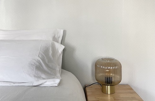 Retreat to the first of our three bedrooms, a luxurious master bedroom designed for comfort and relaxation. With a comfortable bed, ample storage space, and a private desk, this room offers everything you need for a peaceful night's sleep or a productive work session. Wind down after a day of exploring Paris by watching your favorite shows on the large TV, or simply enjoy the serene ambiance of the space.