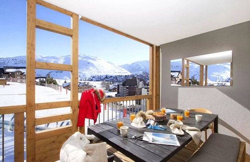 Accommodation: Beautiful apartment of 98m with a beautiful living room very sunny overlooking a balcony of 13m2.This apartment consists of a living room dining room with a large TV, a fully equipped kitchen with induction plates, oven, microwave, dishwasher, washing machine, dryer, fridge, coffee maker, kettle, Nespresso coffee machine, toaster, raclette machine.Guests can enjoy a wine cellar.A bedroom with a double bed with smart TV, a private shower room and a balcony.One bedroom with 2 single beds and smart TV.One bedroom with 1 double bed and smart TVA cabin with bunk bedsa shower room and toilet, A bathroomA separate wc2 garagesWifi in the apartmentResidence with departure and return ski to the feet, very sunny with nice amenities, swimming pool, gym, sauna, hammam, sensory showers.Our services include: Bed linen, beds made on arrival, towels, welcome products and end of stay cleaning.Classified furnished 5-star tourism.