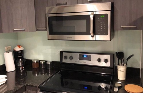 As you settle into this 2-bedroom, 2.5-bathroom rental, you'll find a dining area, a desk, and local meal delivery service. Bathroom amenities include a hair dryer, towels, and toilet paper. Prepare a home-cooked meal in the kitchen, complete with an oven and a refrigerator, as well as a coffee maker, a microwave, and cookware. And thanks to the washer and dryer, you'll even be able to travel light.