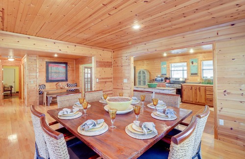 Your perfect riverfront getaway awaits at this rustic 3-bedroom, 3-bathroom vacation rental in Flippin! Take in stunning views of the White River inside the cabin or out on the expansive screened-in deck. Later, cast a line off the private dock and grill up some burgers. Staying inside? This property also features multiple living areas with Smart TVs, 2 fireplaces, and an assortment of board games for the kids. Don't forget to visit Bull Shoals White River State Park and Brown's Beach as well!