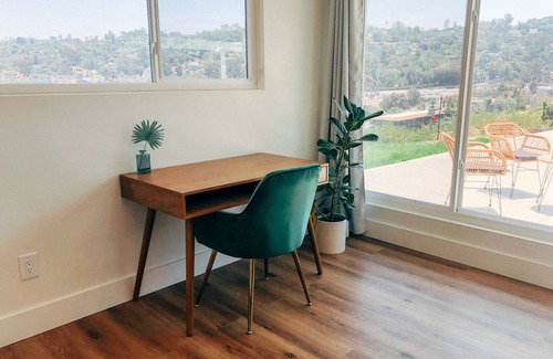 Experience sunny San Diego from this 5 bedroom, 4.5 bathroom foothill home. Wake up to panoramic views of the surrounding hillsides and gather in the spacious living and dining rooms. The home is conveniently located just 15-20 minutes from San Diego's famous beaches and top attractions. After a day of exploration, unwind in the backyard area featuring a hot tub, fire pit, pool table, and life-sized chessboard.