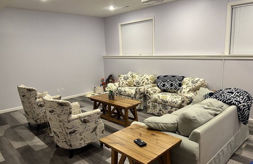 Basement has a spacious sitting area w/ projector, relaxing deck & gas grill. If traveling w/kids, neighborhood has a park only a short walk away.