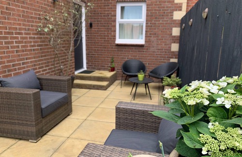 As it is a ground floor apartment, there is access from the front as well as the back through the outside patio. We have an allocated off road private parking space. The enclosed courtyard garden has outdoor furniture at the back, and bench seating out the front within a communal lawned area.