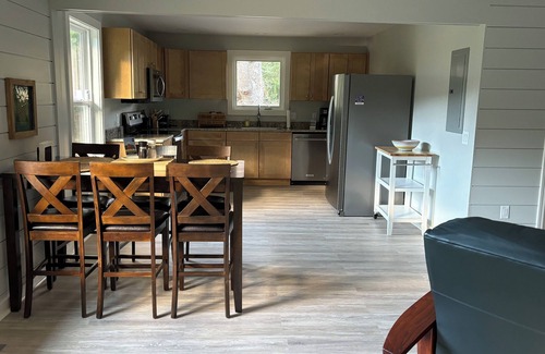 Located midway between Cashiers/Highlands and Bryson City/Cherokee, this property is at the intersection of comfort and convenience. It is steps away from the Tuckasegee River, a fly fisherman's dream, and a short drive from hiking and biking trails, numerous waterfalls and lakes, antique shopping, the Blue Ridge Parkway, the Jackson County Ale Trail, Oconaluftee, Harrah's Casino and so much more. This newly renovated, 2-Bedroom Apartment features a well appointed Kitchen, with plenty of workspace, and a large dining and living area conducive to relaxing and enjoying meals together. It also includes a sunroom with beautiful wood ceilings that cast reflections off the river and ample parking for 2 vehicles. Come relax and take in some fresh air, with a stay at our little peace of heaven, tucked away in the Western North Carolina Mountains, less than 2 Miles from Western Carolina University's campus.