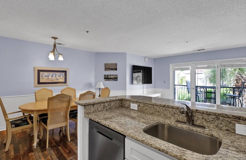 Surf Rise is a first floor 2 bed 2 bath luxury condo located in the Villa Capriani resort. The large 1200 square foot condo is spread out on one level, so there are no stairs to climb! There are two bedrooms, 2 full baths, a well equipped kitchen, dining area, full size laundry room and open concept living area.