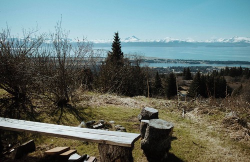 Nestled in a private grove of established trees w/sweeping breath taking views of Kachemak Bay and all of Homer. Zen like immediate relaxation enjoyment time. Perfect for families or groups or those that want space and privacy. High end comforts, furniture and beautifully appointed.