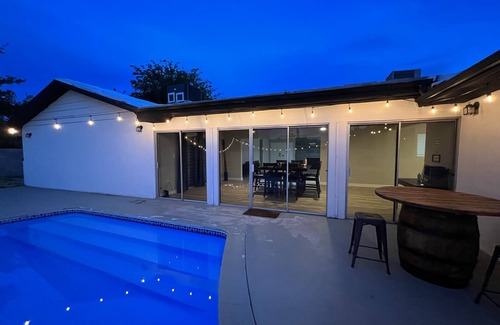 Viva Las Vegas! Welcome home to our Spacious 2,958 sqft fully-renovated & stylish 5 Bedroom Villa with 8 Beds and 3 Baths. Enjoy a luxurious & memorable Vegas vacation with our modern finishes and open concept entertaining space! Come to relax in our outdoor Jacuzzi Spa or take a dip in our sparkling private swimming pool! **POOL IS NOT HEATED** Conveniently located and only 15 minutes away from Downtown Las Vegas Fremont Street and 20 minutes to the infamous Las Vegas Strip!