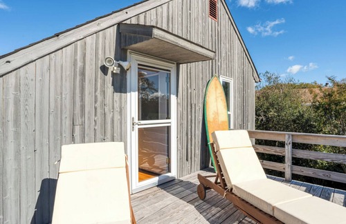 The exterior of this Montauk gem is nothing short of spectacular. Complete privacy is yours to enjoy, as the home is surrounded by lush greenery that creates a serene, secluded environment for your stay. The expansive balcony offers a large dining table perfect for alfresco meals with your group, while the adjacent gas BBQ makes grilling up your favorite summer dishes a breeze. Multiple sitting areas are thoughtfully arranged throughout the outdoor space, each one perfect for sipping cocktails, reading a book, or simply soaking up the fresh Montauk air. As the sun dips below the horizon, gather around the gas fire pit, where cozy seating awaits for late-night chats under the stars. Whether you're looking to lounge in peace or entertain outdoors, this home has you covered. For those with an adventurous spirit, complimentary bikes and paddle boards are available for guest use, giving you an easy way to explore the nearby beaches and coastline. With plenty of free parking on the property, you and your guests can come and go as you please, knowing that the perfect home base awaits your return after a day of adventure.