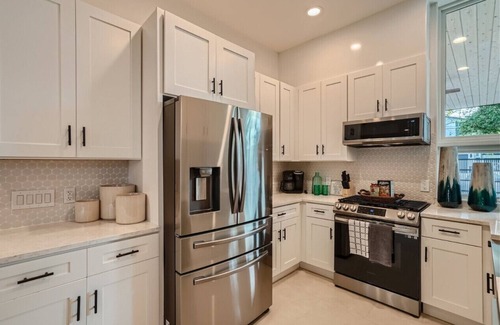 Be one of the first guest to enjoy high-end designer finishes featuring 4 bedrooms with 8 beds to accommodate 12 total guests. The back yard is fully turfed featuring yard games, patio seating and a BBQ grill. Identical unit available next door for larger groups.