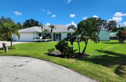 Home is nicely furnished and has a large covered patio area. The patio has a wet bar and plenty of seating over looking the solar heated salt water pool and canal. There is Cable TV, Wireless internet and wireless printer/scanner. Sleeps 10, 8 in beds 2 more on inflatable mattresses. Master bedroom has king bed and master bath has jetted tub and shower. There is another full bath and three other bedrooms, one with a king the second has a queen and the other has 2 twin beds. Driveway has room to park your boat trailer with plenty of room left for your vehicle. 4 vehicle limit. Please park in the garage or driveway. Do not park in front of neighbors yards. Absolutely no parties/events.