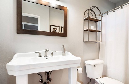 Lastly, the grand family room with vaulted ceilings and skylights is the heart of this home. Take a seat anywhere on the oversized, comfy couch while you watch your pick of choice on the TV. This home offers the perfect vacation stay while you enjoy the beautiful city of San Diego.
