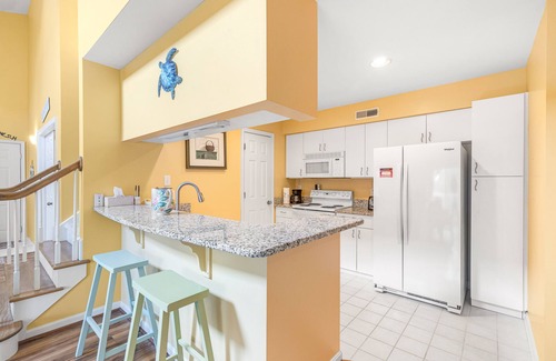 Take advantage of everything this sunny hideaway has to offer! You’ll enter to the main living area filled with comfortable furniture and lots of natural light. Catch up on your favorite show on the large or relax with a good book by the gas fireplace on those chillier nights. The fully equipped kitchen might inspire the chef of the group to whip up a home-cooked meal. Plus, a blender is provided for breakfast smoothies! Dine together at the dining room table with seating for six. Two bar stools are located at the kitchen counter for additional seating. Step outside to the wraparound deck with both a screened-in porch for outdoor dining and catching some rays. The main level features a primary suite with an oversized soaking tub (with jetted features!) and a standalone shower in the en suite bathroom. A hair dryer adds convenience during your stay. The loft features a desk workspace perfect for completing remote assignments. You'll be close to shared amenities throughout, and of course, the beach awaits!