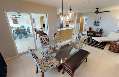 Come see why we fell in love with Punta Gorda and enjoy a stay at our 3 bdrm 2 bath, pet friendly, canal front home. Swim and fish right from dock in the back yard. Allegiant airlines flies straight in and is only a 10 min drive to Punta Gorda airport (PGD). 35 min drive to Fort Meyers airport (RSW). Pack light because house is fully stocked for you…beach towels, fishing poles and bait, beach bag, beach chairs/umbrella, toys, cooler, shampoo, conditioner, body wash, soap, hair dryer, straightener, even toothbrushes and toothpaste if needed and a basket of first aid supplies. Watch beautiful sunsets from the backyard and large lanai, kayak through canals while dolphin and manatee watching, or use the rods and tackle to fish right in the backyard. If you are looking for more to do outside of the property, look no further! Downtown Punta Gorda is the buzzing area with numerous restaurants with water front dining, shopping, and the pier that provides any form of entertainment you may be looking for. Grab the bikes in garage (or rent one for free from the city of Punta Gorda at numerous locations) and you will be there in 10 min. Upon approval, PETS ARE WELCOME. Doggie bed, snacks, food, leash, and toys waiting for your furry friends.