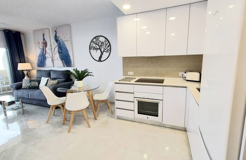 Luxurious apartment in front of the beach, with many international TV channels. WIFI. 5 pools with slides, beach and next to a large park and a dolphinarium.
