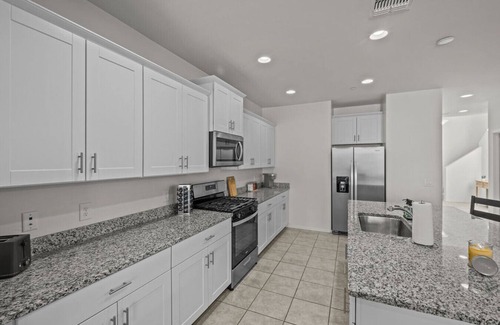Walking paths and park nearby, there are sidewalks. One of the two pools is less than a 3 minute walk away. There is also access to pickleball as well. Address for other pool will be provided as requested. It is a quiet neighborhood. This is NOT a RV friendly neighborhood, there is local parking for the RV at a storage yard nearby. Please inquire if needed.