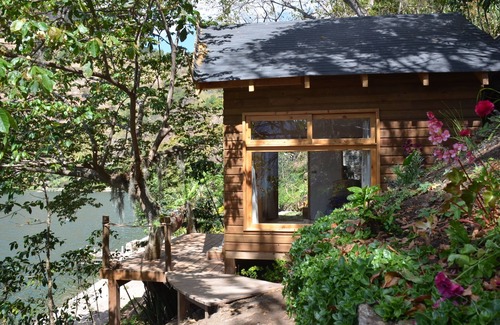 Tree house style cabin surrounded by gardens, located right on the lakeside with spectacular view of the Lake, volcanoes & mountains. This peaceful and lovely cabin is ideal for couples or friends to stay and relax. One bedroom with queen size bed, quality linens and luxurious private outdoor bathroom with deluxe shower.