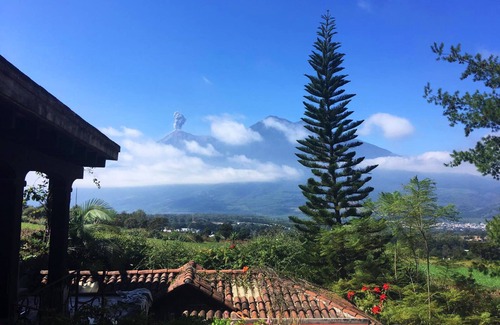 The beautiful Spanish colonial villa was designed and furnished by an artist. The property is set into the mountainside of the extinct Volcan de Agua and looks out over the rolling hills and valley below and two other volcanoes. Surrounded by farmland with compesinos walking their burrows to the fields, the property is a refuge from the bustle of urban life. Birds serenade the sunrise.