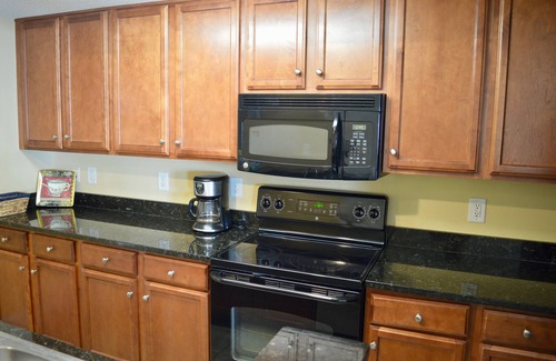 The gourmet kitchen is outfitted with cherry-wood cabinets, granite counters, refrigerator, dishwasher, stove, microwave, Cuisinart Coffee 12-cup coffeemaker, a Shark hand vac and vacuum, etc. Other amenities include cable/satellite, complimentary wireless Internet access, telephones with voicemail, washer/dryer, and an iron and ironing board.