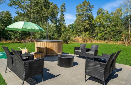This beautiful vacation home leaves nothing to be desired and is ideal for a vacation with the whole family in Ordrup. The living space of the house is divided into 4 bedrooms with two double and two single beds, two bathrooms, a kitchen and a living room.