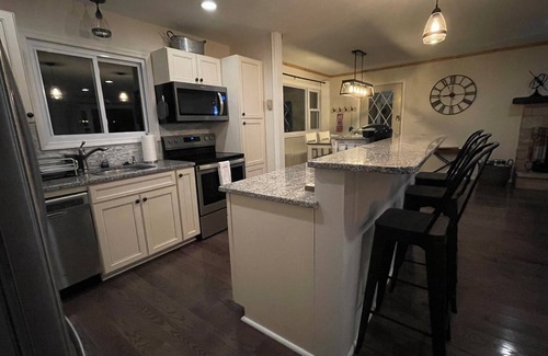 Beautiful all season totally renovated ranch style home available for weekends, weekly and monthly rental. Spacious living / dining area with a wood burning fireplace, open kitchen with a breakfast bar and stainless steel appliances, 3 bedrooms and 2 full baths. Large backyard with a firepit and Adirondack chairs overlooking beautiful Lake Harmony and Split Rock Lodge.