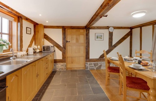 Pet-friendly barn conversion set on a farm in Adfa village, surrounded by fields and beautiful views towards Kerry Ridgeway. Stabal y Copa features a bright, spacious kitchen and a separate utility room with further appliances. There's a charming lounge boasting exposed timber beams, a 3-piece suite, TV, DVD player and patio doors that open out onto the south-facing patio area. Upstairs you'll find a king bedroom, twin bedroom and a family bathroom with bath and shower. There are some plenty of attractions and amenities to explore just beyond Adfa village, from the many galleries, museums and walks found in Newtown to Llanfair & Welshpool light railway and Llyn Coed y Dinas Nature Reserve.