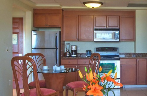 Comfortable apartments with two twin beds in bedroom plus one queen sofa-bed in living room. Room opens to balcony with resort views of tropical gardens/palms among the buildings of Paradise Village. Short walk to pools/beach/restaurants. Extensive in-room amenities complement each suite at Paradise Village Resort Nuevo Vallarta.