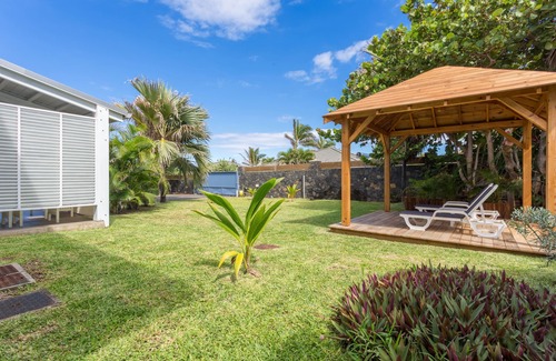 The district of Grands Bois which has kept all its authenticity is 5 minutes from the town of Saint Pierre where the beach with its lagoon is located. The house, furnished in a contemporary style, is made up of an air-conditioned bedroom (160 cm bed) equipped with an air fan. It has a living room, a dining room, a fully equipped American kitchen. Washing machine, dishwasher, electric oven, microwave, gas stove, fridge, television. A bathroom, independent W. c. A terrace with outdoor lounge. Private parking. Garden. Shared swimming pool. Internet access. Possibility of extra bed for a child.