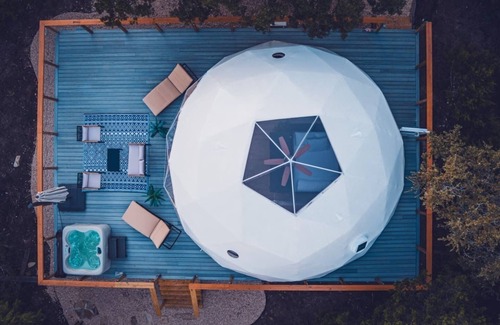 "Escape to a unique, romantic Hill Country retreat just 15 mins from downtown Fredericksburg. Nestled in secluded hills, our tranquil oasis offers stargazing and serenity. Your gateway to the Texas Hill Country - wineries, dining, shopping, and adventures at your doorstep. Enjoy modern luxuries like WiFi, private hot tub, AC, heating, barbecue grill, and HDTV. It's glamping in style, an unparalleled Hill Country experience. Come make unforgettable memories in this serene escape!"