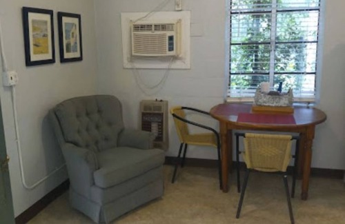 Great for one couple or two good friends. One big room subdivided into eating/relaxing and sleeping areas. Private bathroom with shower and closet area for hanging clothes. Wall AC and gas heat. Double and twin bed, ceiling fans inside and on the screened-in front porch. Pet friendly. See website for policy. Cabin 1 has Wifi and cable tv.