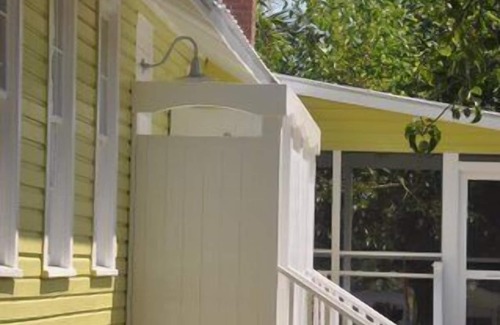 There is an outdoor shower with hot and cold water which opens right into the main bath, perfect for a shower anytime and wonderful to wash off the sand from a day at the beach.