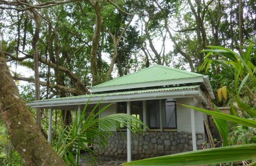 Stone cottage around a Banyan tree | House in La Plaine, Dominica