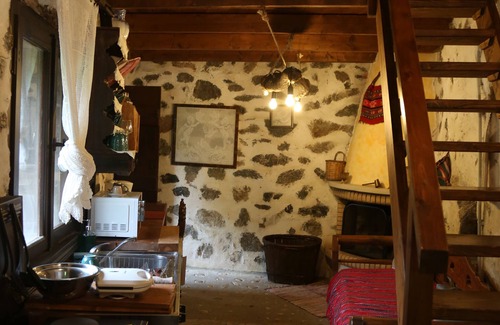 If you wish to write, paint, live...come to the fairytale old village of Kato Mixorouma, and stay in a stone-built cottage in a garden flooded with flowers and trees on the bank of the river full of ducks and gees, and let the singing of the birds and the splashing of the river rock you to sleep and calm you. The property contains two small cottages, approximately 50sq m each in a 1000 sq m lot. The cottage in this ad has a small but practical kitchen, a living room with fireplace and a bathroom which is access through the living room and is semi open air. The sleeping area for 2, is on the built-in mezzanine. The cottages are quite simple, but appropriate. Mr Antonis, the owner, will offer true Cretan hospitality during your stay.