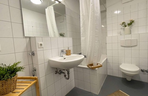The holiday apartment is situated in a charming residential area of Cuxhaven, offering a perfect blend of tranquility and accessibility. Just a short walk away are inviting beaches, ideal for sunbathing and water sports, including sailing and windsurfing. Nature enthusiasts will appreciate the nearby opportunities for walking and cycling, with scenic trails just 1 km from the apartment, perfect for enjoying the local wildlife. For those seeking relaxation, spa treatments and massages are available within 2 km. Families will find playgrounds and a recreational park approximately 1.5 km away, providing fun for all ages. Golf enthusiasts can test their skills at a course only 3 km from the property. The vibrant town center, known for shopping, dining, and cultural attractions such as museums and discotheques, is easily reachable within 2.5 km, ensuring a delightful stay for all visitors.