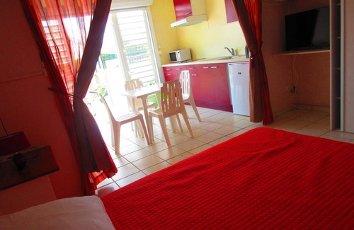 sunny studio, with kitchenette, microwave, fridge, bathroom, air conditioning. It is located 5 minutes walk from the beach. Nearby: mini-market, supermarket, restaurants, pizzerias, discos, Fort Fleur d'Ép, tennis, sailing, (the intermunicipal swimming pool is less than 10 minutes by car).