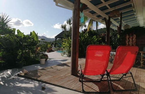 Garden level studio in a tropical garden with swimming pool to cool off and panoramic views of the rock and the diamond bay. Fully equipped with kitchenette table and benches. The studio has a double bed, a sofa bed in the second bed; a bathroom with toilet. Sheets and towels are provided. It is air conditioned, you have TV and wifi available.