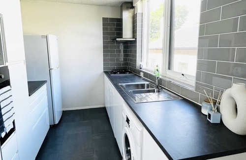 2 Bedroom Apartment with Air Conditioner, Bedding and Kitchen