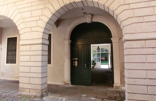 This elegant attic has recently been restored by a famous architect. It is furnished with antiques and the exposed beams of the ceiling make a unique warm and relaxing atmosphere. The apartment is on the third and last floor of a fifteenth century palace located in the heart of medieval Padua, very close to the squares and places of artistic interest. Its position in Padua’s restricted traffic area makes this apartment unique for peace and quiet. The attic is flooded with light and the windows overlook lush secret gardens. Its 85 square meters, consist of a bedroom, a bathroom with shower-bath and Jacuzzi, a large living room, a kitchen with fully equipped terrace overlooking the Duomo, a laundry room, and large closets. There are two large sofas in the living room. One can be used as a double bed, but please bear in mind that the windows in the living room do not have curtains but only external motorised sun blinds. This apartment is very well isolated from the outside extreme temperatures. The roof has been built with the ventilation system and the windows are double glazed with thermal glass. A centralised system of air conditioning and the under floor heating guarantee the best comfort in every season. The centralised vacuum net makes this apartment very easy to clean and it garantees a spot less maintenance.
