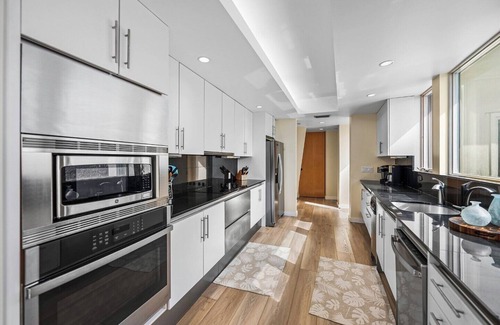 The property features a spacious layout with bright and airy interiors, designed for comfort and relaxation. The open-concept living and dining areas flow seamlessly into a fully equipped kitchen, perfect for preparing meals while soaking in the coastal scenery. Large windows and sliding glass doors invite natural light and ocean breezes into every corner.