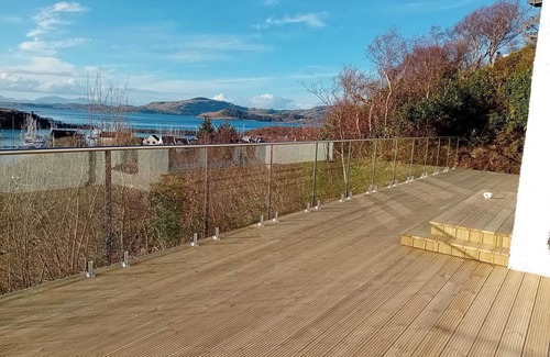 Taigh Nam Broc is a stunning spacious contemporary holiday home standing in an elevated position, above Craobh Haven Marina, by to the sea with unparalleled views across the Sound of Jura towards the Isle of Mull and the famous Corryvrekan Whirpools. Tucked away near the end of a short gravelled track this spacious and magnificent house offers peace and tranquillity yet within walking distance of a pub / restuarant and only 25 minutes drive from many restaurants in Oban. Underfloor heating keeps the house cosy with individual room stats for your own comfort while admiring the picture views from the patio windows, which lead onto a stunning decking area to take it all in. The house is exceptionally spacious with a living area both upstairs and downstairs and a games room in the basement giving guests plenty of opportunities to relax in their own space.