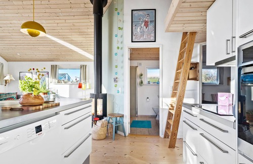 This pretty holiday home on Hejsager Strand invites you to spend relaxing days. The cosy furnishings, combined with a wood-burning stove, create a warm atmosphere that will make you feel right at home. From the terrace and garden, you can enjoy the view of the sea while your children play outside. Whether cooking together, relaxing by the wood-burning stove or sunbathing in the garden, every moment here is a pleasure.