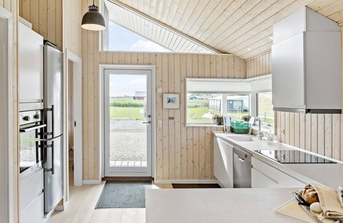 Your holiday home, located near the ferry port of Rødby, offers plenty of space for a large family and is the ideal base for exploring the beautiful island of Lolland. The inviting holiday home impresses with its stylish interior and spacious outdoor area. You can prepare meals together in the open-plan kitchen and enjoy them at the neighbouring dining table. The warm fire in the wood-burning stove creates a cosy atmosphere. Use the spacious garden for relaxing afternoons or to play various games and enjoy the fresh air.