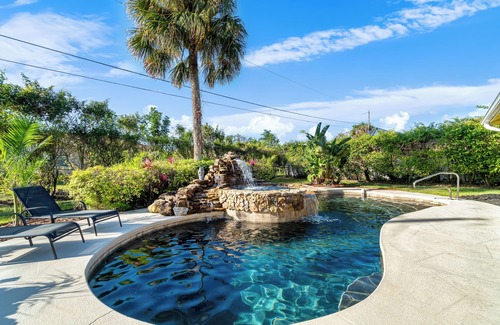 Embark on a luxurious retreat in this exquisite 3-bedroom home located in Golden Gate, East Naples. This property's crowning jewel is its extraordinary backyard, featuring a magnificent pool and spa, promising an unparalleled vacation experience. BACKYARD PARADISE Spectacular Pool and Spa: Immerse yourself in the home's breathtaking pool, complete with a hot-tub and an elegant fountain feature. This oasis is designed for ultimate relaxation and enjoyment, ensuring a serene and indulgent escape. Sun-Drenched Lounging Area: The spacious backyard is perfectly equipped for lounging in the Florida sunshine, featuring comfortable seating and a grill area for delightful outdoor gatherings. INDOOR FEATURES Entertainment and Connectivity: The living room boasts a large TV and entertainment system, complemented by high-speed WiFi throughout the home. Gourmet Kitchen: A full kitchen with modern amenities ensures guests can cook and dine with ease, adding a home-like comfort to your stay. Comfortable and Versatile Den: The third bedroom is cleverly converted into a den, offering a pull-out sleeper sofa for extra guests, a desk and office chair for work or study, and a pinball machine for a touch of fun and entertainment. Home Fitness Setup: A Tonal workout machine and additional exercise equipment are available, allowing guests to keep up with their fitness regime. IDEAL LOCATION Nestled in the tranquil area of Golden Gate in East Naples, this home offers a peaceful retreat while remaining conveniently close to local attractions, shopping, and dining options. This property is not just a place to stay but a destination in itself. With its stunning heated pool and spa as the centerpiece, along with a range of indoor amenities for relaxation, entertainment, and work, it presents the perfect balance for a memorable and enjoyable vacation. Whether seeking a serene getaway or an active holiday, this home caters to all desires. Book your East Naples adventure and indulge in the luxury and charm of this remarkable property.