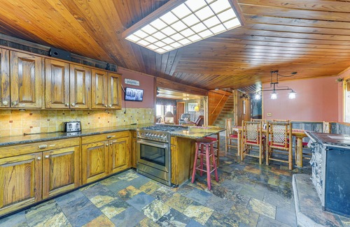 Surround yourself with sweeping mountain views when you retreat with loved ones to this rustic getaway in Dubois, WY! Boasting 5 bedrooms, 3 bathrooms, 2 living areas, and 4,200 square feet, this vacation rental cabin offers ample space for everyone. After taking a day trip to Yellowstone National Park or Legend Rock State Petroglyph Site, prepare a meal in the well-stocked kitchen and dine out on the wraparound deck.