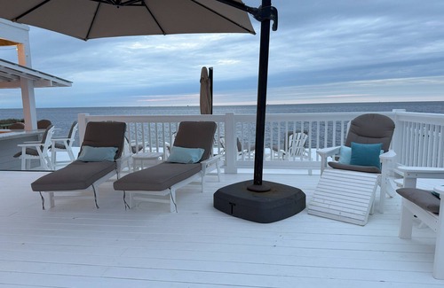 Welcome to Mail Landing! If you love a magnificent and rare view, this is the place for you! Our fully renovated family vacation home has 4 comfortable bedrooms and sits feet away from Pamlico Sound. Located on the top floor, the first guest suite features a king bed, an 80-inch flat-screen w/Apple TV, and an en-suite bathroom with double sinks, a jetted tub, a separate shower, and a private toilet. On the lower level, the second guest suite features a queen bed, a 40-inch smart TV, and an en-suite bathroom with double sinks, a jetted tub, a separate shower, and a private toilet. Also on the lower level are the bunk and daybed rooms. The bunk room features a twin-over-full bunk bed and a twin trundle bed. The daybed room has a twin-sized bed. There is an additional full bathroom on the lower level and a half bathroom on the top floor. The family room offers an additional full bed (Cordaroy's bean bag chair) for extra sleeping space. The well-appointed kitchen, dining room, and living room with curved 55-inch HDTV are on the top floor. All levels offer deck space and breathtaking views of Pamlico Sound. The main feature of our house is the fenced-in back deck, which takes you to the water's edge! The deck space includes a heated pool and an outdoor bar (with running sink, ice maker, and charcoal grill). There is also an outdoor shower. The house also has a cargo lift, perfect for transporting groceries and gear to the upper levels. Parking under the house is open for guests, and access to kayaks (2), paddle boards (3 inflatable), pool toys, and other beach-going items are on-site and ready for use!