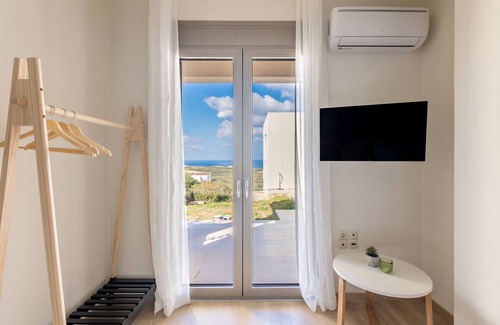 Modern & Minimal Villa with Stunning View to the Aegean with all amenities provided and all equipment needed to make a wonderful and unforgettable stay in Crete!A modern villa 160 sq. meters with stunning view fully equipped with all facilities for your convenience . Spacious living room with stunning view to Aegean Sea and the island of Dia . Spacious living room with comfy sofas and dining table. Induction kitchen for your safety as also dishwasher. All bedrooms with smart tv and inverter air condition equipped with super comfortable beds & hyppoallergic matresses filled with aloe.2 bathrooms with shower. 10kgs. Clothes washing machine.