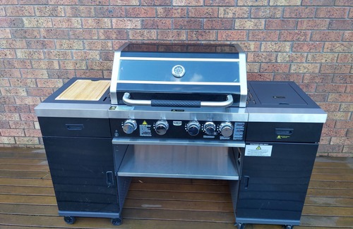 Outside there is an enormous sunny deck with an outdoor dining setting for ten people and a five burner BBQ that is plumbed into natural gas - you never have to change gas bottles!